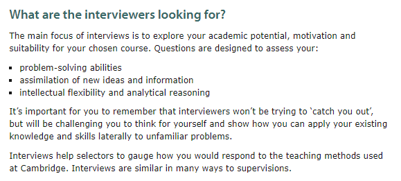 在剑桥本科申请的Interviews页面上明确表示,在2022-23申请季中,大多数非英国本土学生将接受线上面试。而「三一学院」对于英国本地生将采取线下面对面形式(国际生依旧线上面试)。但不管是线上面试,还是线下面对面,内容内容将会保持一致。同时剑桥也提醒学生们:严禁分享或记录面试或入学评估问题,否则可能会无意中对申请造成不利影响。
