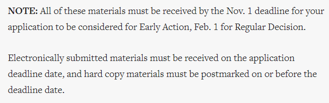 密歇根大学安娜堡官网截图:EA申请人的所有申请材料必须在2022年11月1日之前收到,所以申请人必须提前计算好时间,确保SAT/ACT分数可以在截止日前提交给招生办。