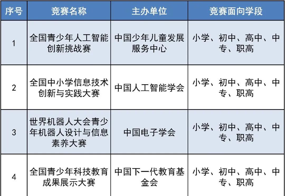 🔺 广大学生和家长要擦亮眼睛,凡是未列入“面向中小学生的全国性竞赛活动名单”的均是违规竞赛,名单内没有面向义务教育阶段学生的学科类竞赛,所有竞赛均不得向学生和家长收取任何费用,竞赛及竞赛产生的结果均不作为中小学招生入学的依据,也不作为高考加分项目;