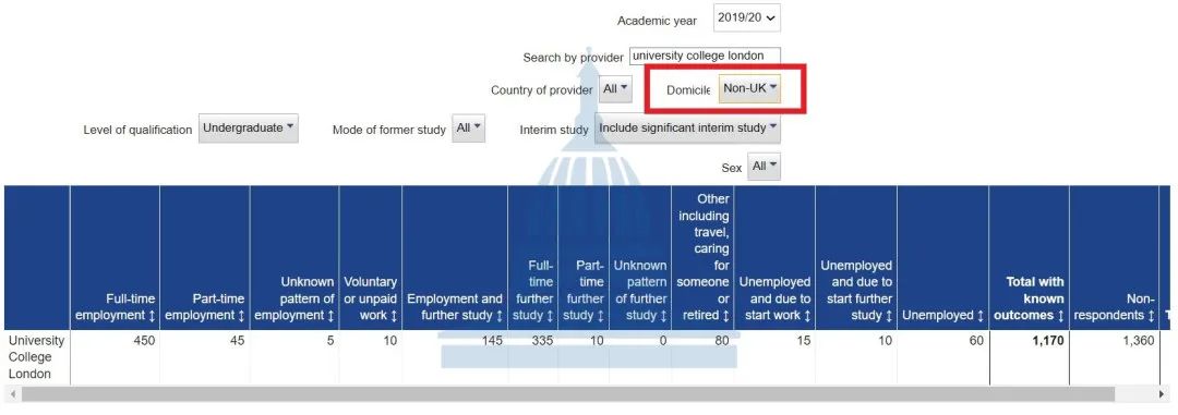 如果只看留学生的话,UCL非本土本科学生有1170人,510人就业,490人继续读硕士,两种选择基本是1:1的比例。