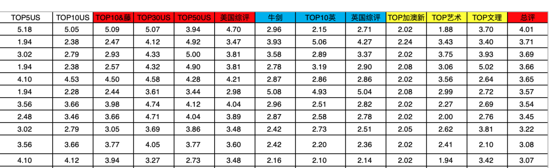 美本全国30强:除了藤校&Top10录取之外,今年加入了大家最关心的Top30和Top50的数据评分。