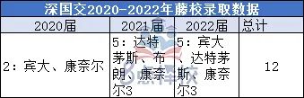 当然,比较惊喜的还是深国交的藤校录取数,近3年深国交一共有12封藤校录取,紧随深中,为深圳第二。