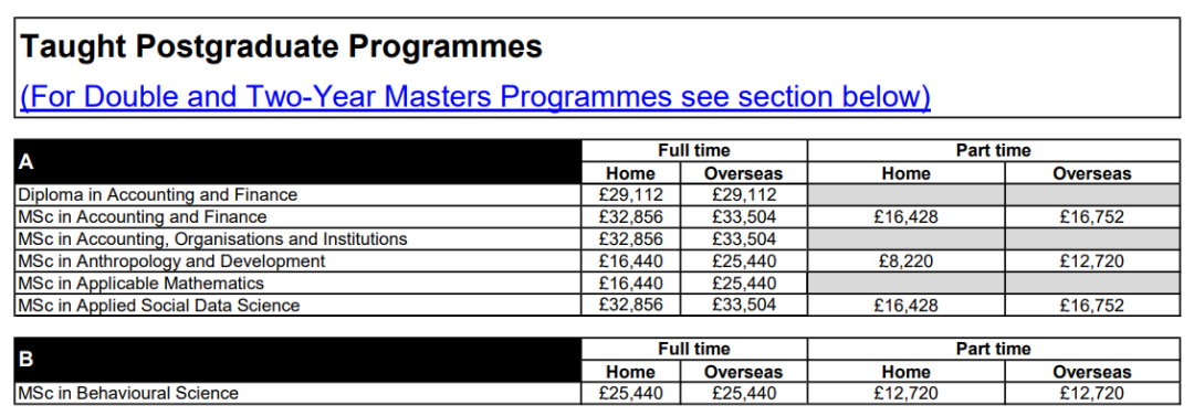 除了开设在商学院的“社会科学研究方法”这个专业,其余专业学费都在30,000英镑左右,金融相关专业略贵一些。