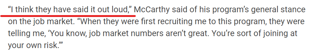 Michael告诉新闻媒体“Inside Higher Ed”,他认可教授对这门学科就业市场的分析,但这些风险在学校招收他的时候,他就已经做好心理准备了。