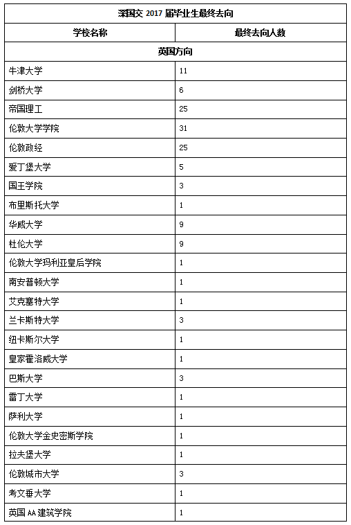 从表中可以看出,每年被英国G5超级精英大学录取的学生占英国去向比重已经超过60%,而占总人数占比也已经超过30%,深国交在英国名校申请的优势非常明显,可以说只要是申请英国方向学校,等于一只脚已经踏进了G5超级精英大学。