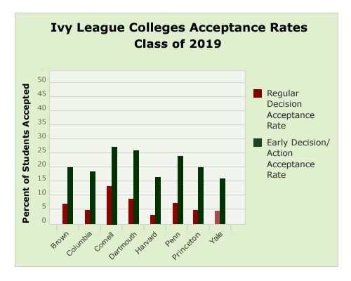 ▲ 美国常春藤大学2019届“早录取”和常规录取人数比例