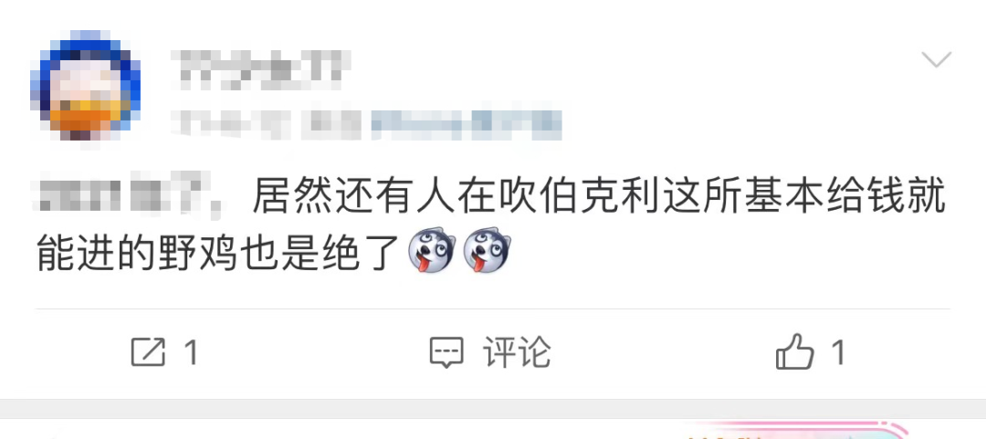不过,因为校友王力宏、欧阳娜娜、段奥娟等国内艺人就读,在中国吃瓜群众中小有名气的伯克利音乐学院,常常被黑子形容为“明星收容所”的野鸡学校???