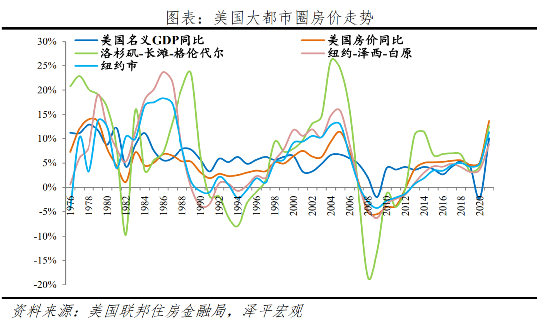 从国际经验看,核心城市房价高、涨幅高于其他地区是世界普遍现象。在英国,根据英国政府网站数据,1968年-2022年2月,大伦敦地区房价从0.44万英镑/套上涨至53万英镑/套,英格兰地区从0.34万英镑/套上涨至29.6万英镑/套,全国从0.36万英镑/套上涨至27.7万英镑/套,伦敦地区房价涨幅达119倍,高于英格兰地区的86倍和全国的76倍。在美国,1975年Q1-2022年Q1,美国、纽约市、纽约-泽西-白原分区(纽约都会区分区之一)、洛杉矶-长滩-格伦代尔分区(洛杉矶都会区分区之一)房价分别上涨8.6、10.2、13.1、22.4倍。在日本,房地产泡沫破灭前,1975-1991年东京区部、横滨、名古屋、京都、大阪、神户等六个核心城市地价上涨4.5倍,其他城市上涨1.7倍。