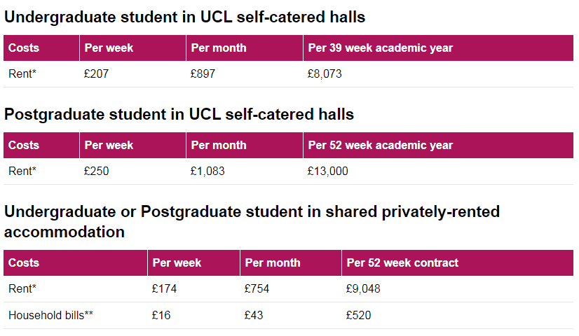 不过Nola总结出的这一数据略高于UCL官方给出的生活费指导金额。