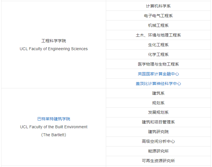 伦敦大学学院是欧洲最早开办土木工程专业的大学之一,目前,UCL土木工程系下设的相关专业包括: