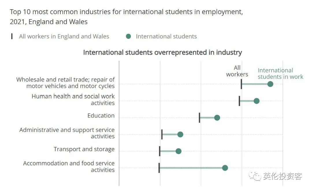 在英格兰和威尔士就业的留学生群体中,最常见的行业包括: