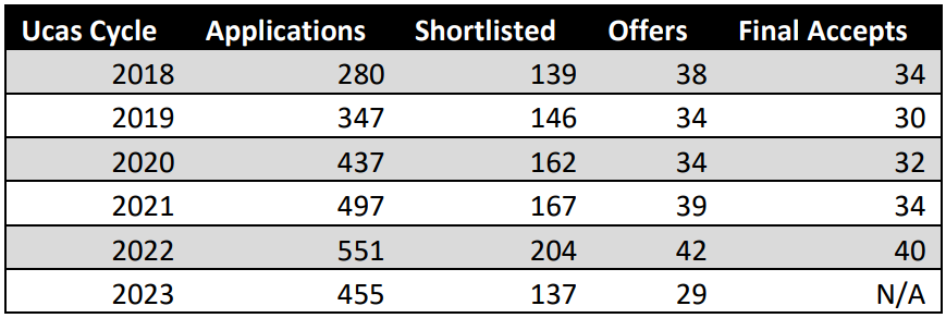 今年年初2月份,牛津材料科学专业也公布了2023Fall申请数据:146位申请人中46位成为offer holder,专业录取率达32%,2016-22这七年来,材料专业的录取人数也稳定保持在40-50人之间。