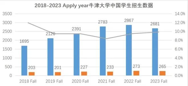 今年牛津大学一共收到2681份来自中国学生的申请,比起前两年,该数据出现了下滑。