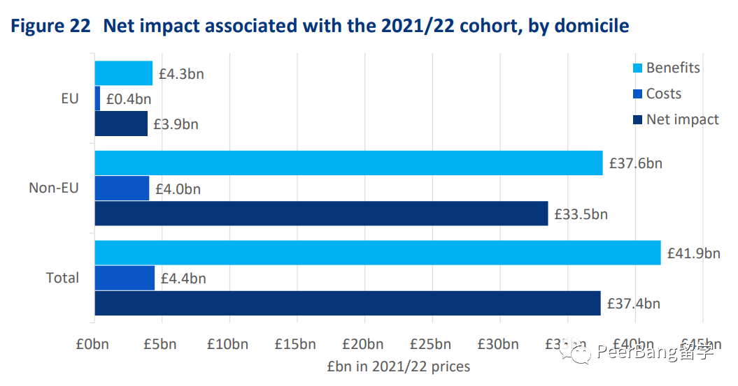 报告指出,对于英国经济而言,2021-22学年的留学生价值为约420亿英镑。