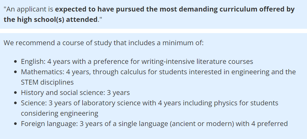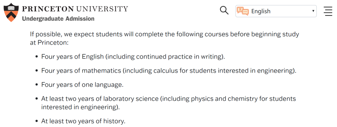 普林斯顿大学对申请人的核心科目要求: