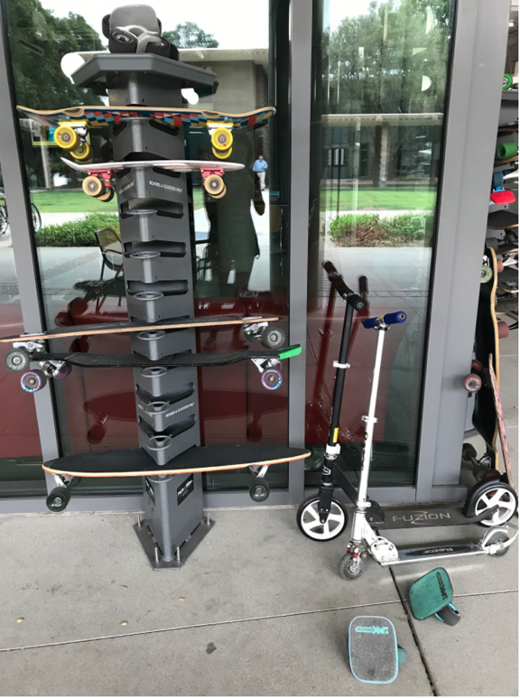 Mudders的创意不止于此,不满足于传统交通的他们不光是自行车、滑板和滑板车的忠实爱好者,还特别喜欢研究新奇的交通方式,在校园里常常不乏骑着独轮车、踏着“风火轮”(freelines)的学生,偶尔还能看到踩着轮滑和高跷来上课的学生,而Mudder早已对他们见怪不怪。