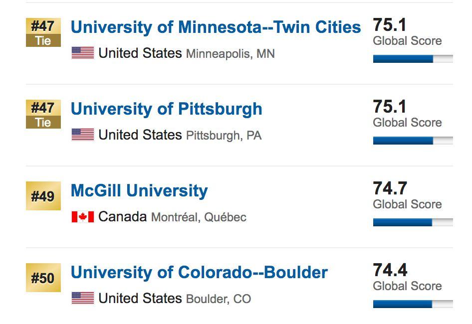 此外,本次挺进前一百的英国大学还有曼彻斯特大学,排名64。布里斯托大学排名81。格拉斯哥大学排名89。南安普顿大学排名94。伯明翰大学排名96。