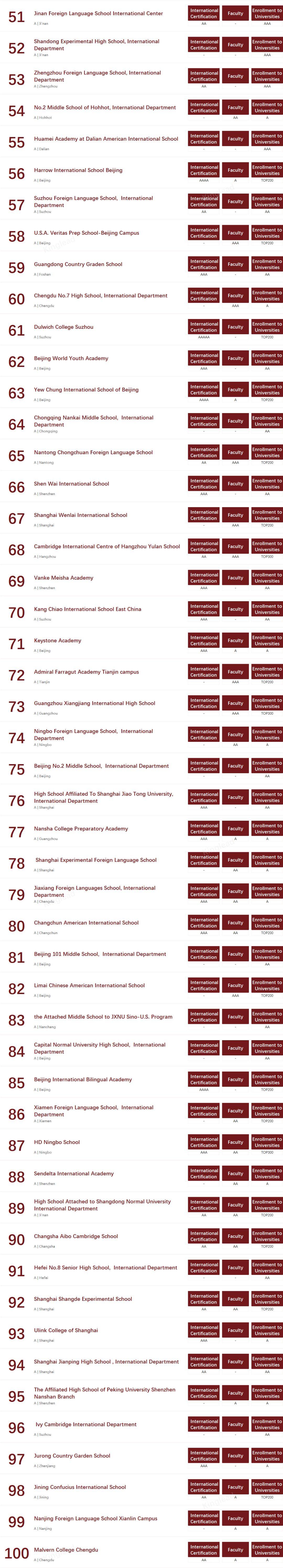 The ranking is based on publicly available data and utilizes quantitative model and compositive weighted score to reflect international schools' comprehensive competitiveness from three core dimensions : international certification, faculty, and enrollment to universities.
