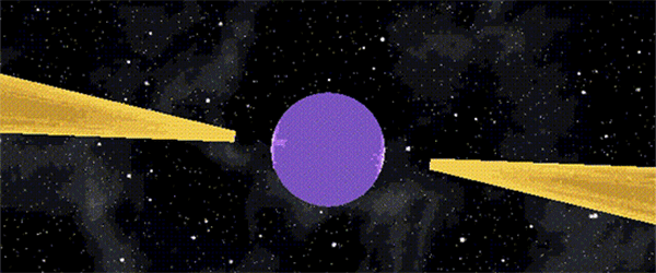 这颗四处乱照的星叫做脉冲星(Pulsar),是中子星的一种,会周期性发射脉冲讯号。