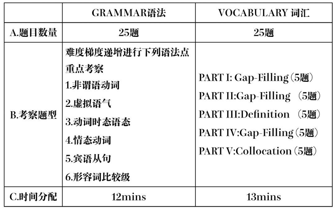 B. 初二升G1,初三升G1 及 高二升A1英文入学考试,考察模式和重点完全一致。