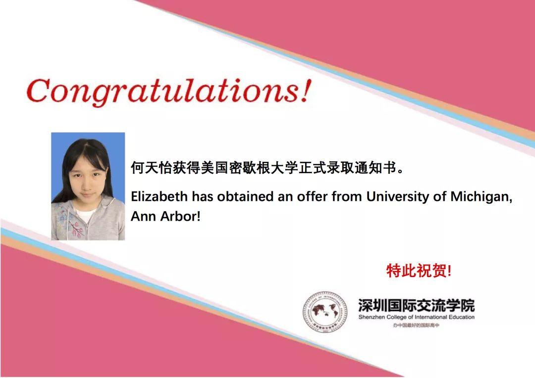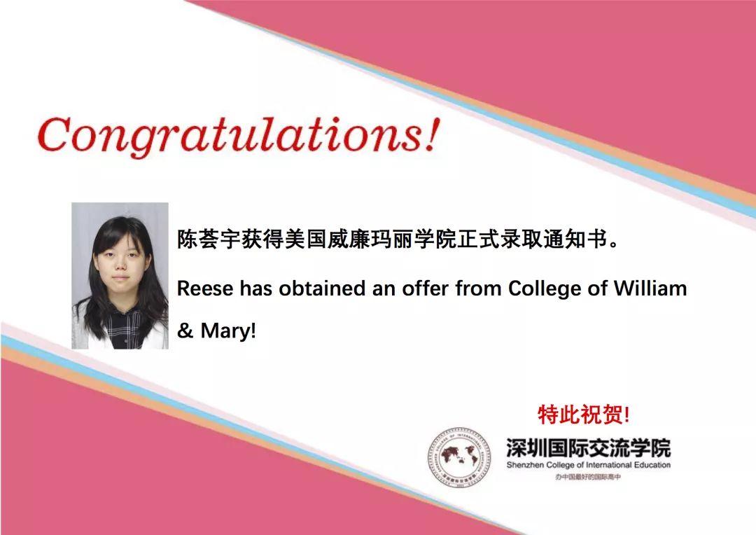 截止目前,芝加哥大学录取offer 1枚、埃默里大学4枚、密歇根大学安娜堡分校3枚、维克森林1枚、塔夫茨大学1枚、纽约大学4枚、威廉玛丽学院1枚、杜兰大学1枚;顶尖文理学院汉密尔顿学院1枚、戴维森学院1枚、哥伦比亚大学巴纳德学院1枚、爱默生学院2枚,以及顶尖艺术院校罗德岛设计学院1枚。