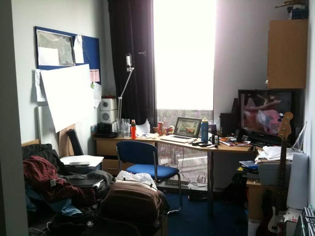 这是一间 Queen Marry 伦敦玛丽女王大学的宿舍。从电脑的状态能看出,这张照片有“年纪”了。房间好像还算宽敞。