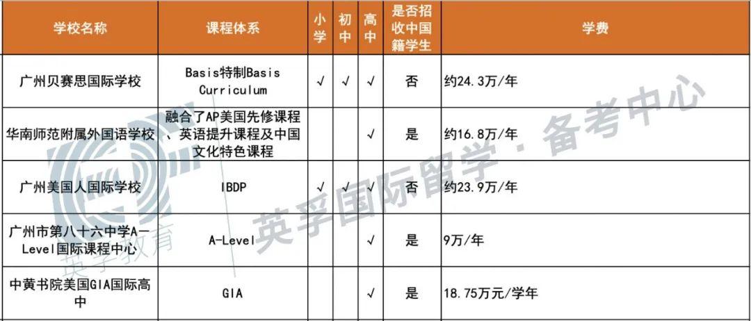 针对众多家长们在择校时非常关心的问题——学校课程体系、招生对象以及学费,备考君为大家总结了广东各区双语/国际学校的相关信息,从学费学制层面对比,让家长对孩子就读国际学校有更加科学的预算和规划。