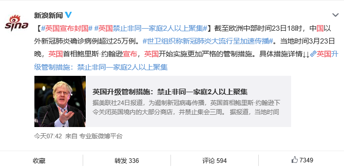 好消息是,目前很多国家已经开始逐渐重视起这次疫情,并且纷纷采取措施积极应对,就连之前采取消极“群体免疫”的英国都取消了公共活动,开始进行免费的病毒检测。今日鲍里斯最新宣布全国封锁三周,严格限制居民活动;