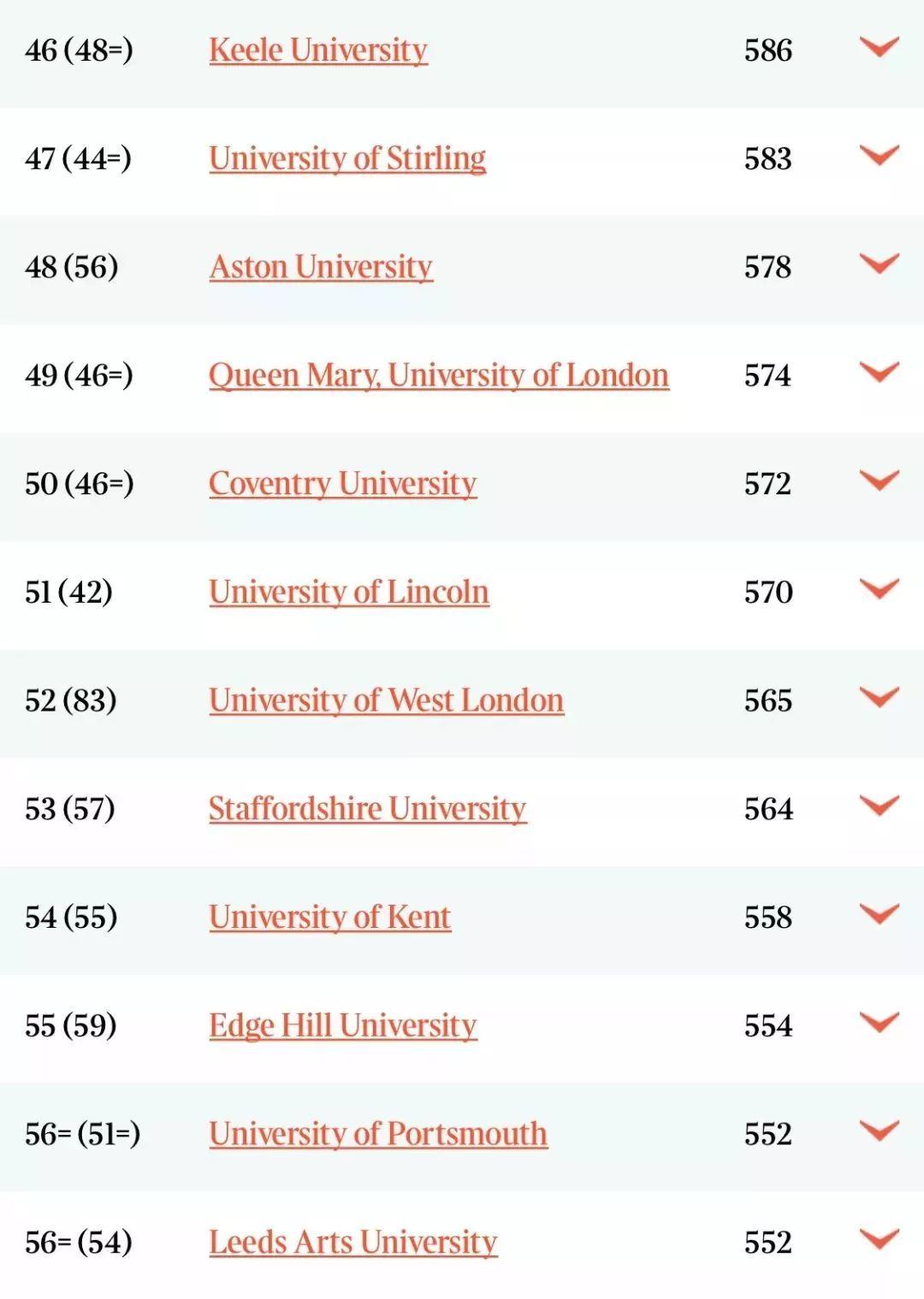 ● 还有些退步比较大的大学:东安格利亚大学从15跌至到23;诺丁汉大学院从16跌至21,纽卡斯尔大学从21掉到28。