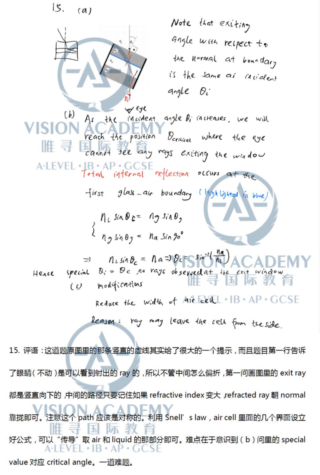 光学折射题还是PAT一直以来的难题,把一个本来很简单的Snell’s Law包装成复杂的几何图形,还把题目中的方格转动了一下,给考生造成疑惑。