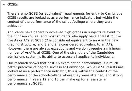 剑桥大学的成绩要求官网上列明:
