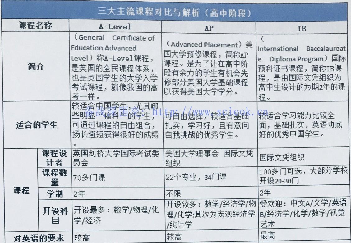如何选择适合自己的国际课程?随着国际教育的不断发展,越来越多的家长会选择让孩子就读国际学校。A-LEVEL、IB、AP,作为三大国际课程体系,在课程内容设置,难度以及学制等都有一定的区别,考虑到不同课程对于申请海外留学目的国和目的大学的针对性,一般基本上在国际学校入学之初就会确定一种或两种国际课程进行学习。但是很多家长往往一头雾水,对课程内容一知半解:不是只要考托福和雅思就可以了吗?为什么还要考IB、AP或者A-LEVEI?这三种国际课程体系有什么区别?它们之间又有什么关联呢?该怎么选择适合自己的学校?学生在其课程体系下,要考多少分才能进名校?。。。。。。。。。。。。今天旨在给各位科普,除了托福/雅思这两个语言类考试,国际学校中的IB、AP和A-Level课程分别有些哪些不同,便于各位家长在