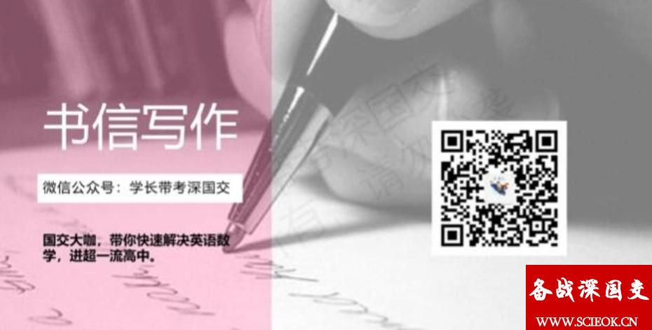 欢迎来到深国交英语写作专题的第二章!本次视频我们将重点关注非常常见且常考的一类题型:书信写作。它不仅在考试中可能有所涉及,以后在深国交也是一门必须掌握的技能。插个题外话,在深国交生活中,学会如何用邮件和学生及老师沟通是非常重要的技能,本次的视频也许对以后的沟通交流问题有些帮助哦!我们将会重点分析自荐信和建议书两种类型,除此之外,本次视频中还给大家留了一道作文题(500字),希望大家可以构思一下。看完视频可以将作业交到后台哦,期待看到大家不同的想法